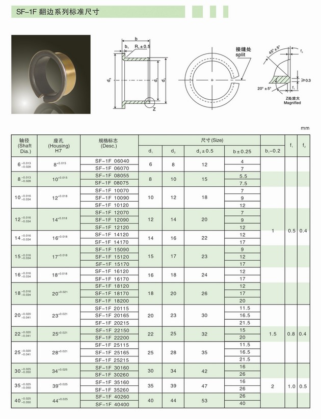 SF-2邊界潤滑軸承尺寸表
